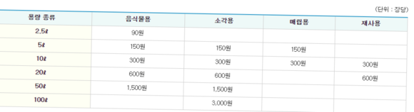 일반 가정집에서는 종량제봉투 가격