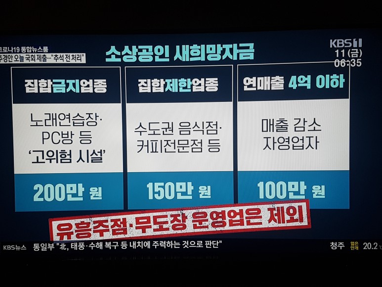집합금지업종 : 노래연습장.PC방 등 고위험시설은 200만원지원